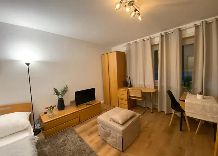 El apartamento de 25 m^2 se encuentra en el distrito Westend y ofrece acceso al Recinto Ferial Messeturm, situado a tan solo 8 minutos a pie. Desde el Studio-Apartment, la Antigua Iglesia de san Nicolás está a 1,1 km. El Studio-Apartment está enfrente de Sankt Antonius.